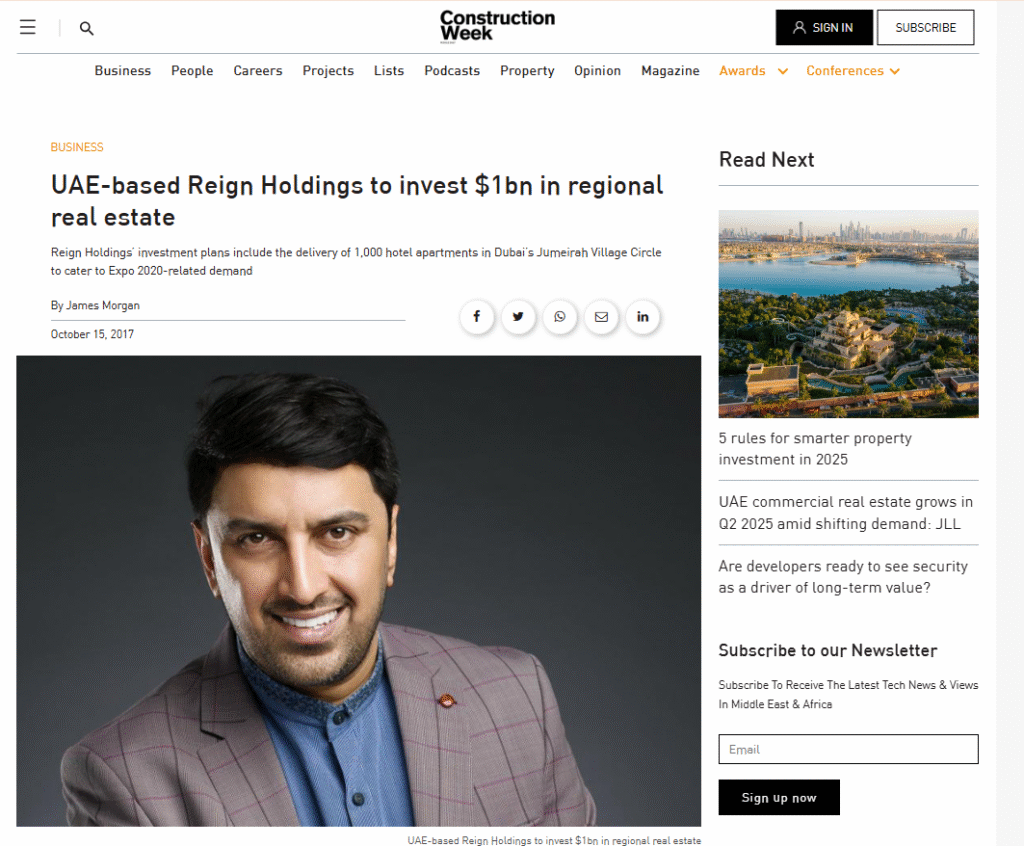 UAE-based Reign Holdings to invest $1bn in regional real estate